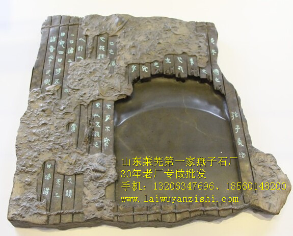 精工制作的“書本原石”、“硯臺”、“文房四寶”、“屏風”、“花瓶”、“扇面”、“福祿壽掛件”、“孔子文化圓盤掛件”等上百個品種工藝品。造型古樸大方,格調高雅,形態各異,有其獨特風韻,是難得的藝術珍品。還可雕刻企業標志LOGO、雅文詩句等,深得文人雅士的賞識,并被多次選為國家禮品,饋贈外國元首和國際友人。